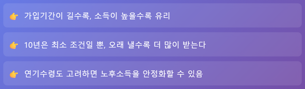 그 이유는 크게 세 가지 요소가 연금액 산정에 영향을 주기 때문입니다.