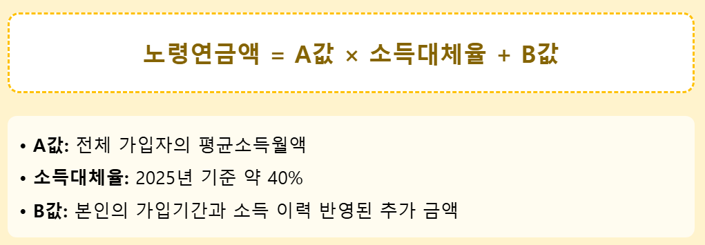 국민연금 수령액은 다음과 같은 산식에 따라 계산됩니다.