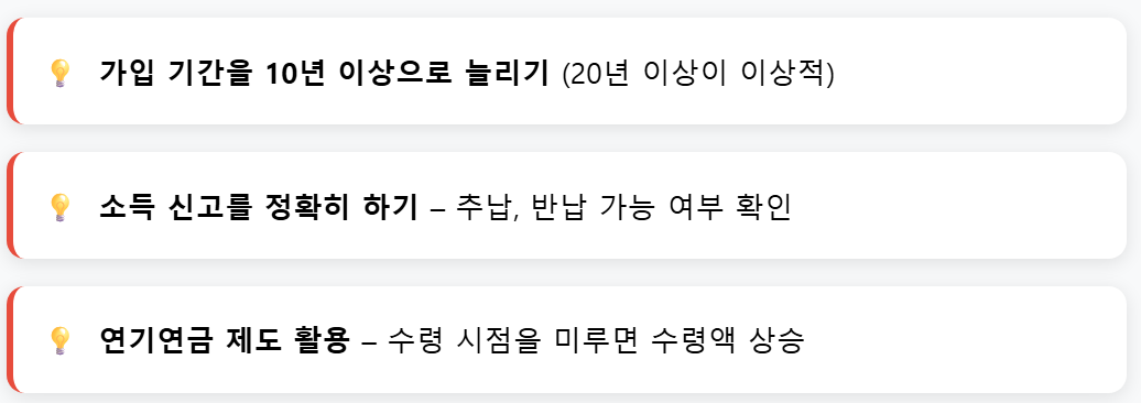 조금이라도 더 많은 연금을 받기 위해서는 다음의 전략을 고려해볼 수 있습니다.