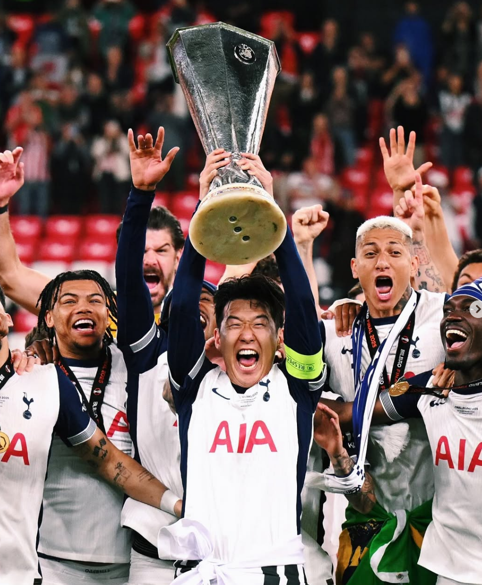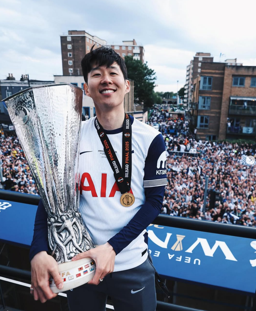 2025년 5월 22일 유로파리그 결승에서 맨체스터 유나이티드를 1-0으로 꺾고 우승을 차지한 손흥민은 자신의 프로 커리어 최초 우승을 토트넘에서 이뤘다. 주장으로서 팀을 이끌어 트로피를 들어올린 것은 그의 토트넘 생활에 완벽한 마침표를 찍었다.