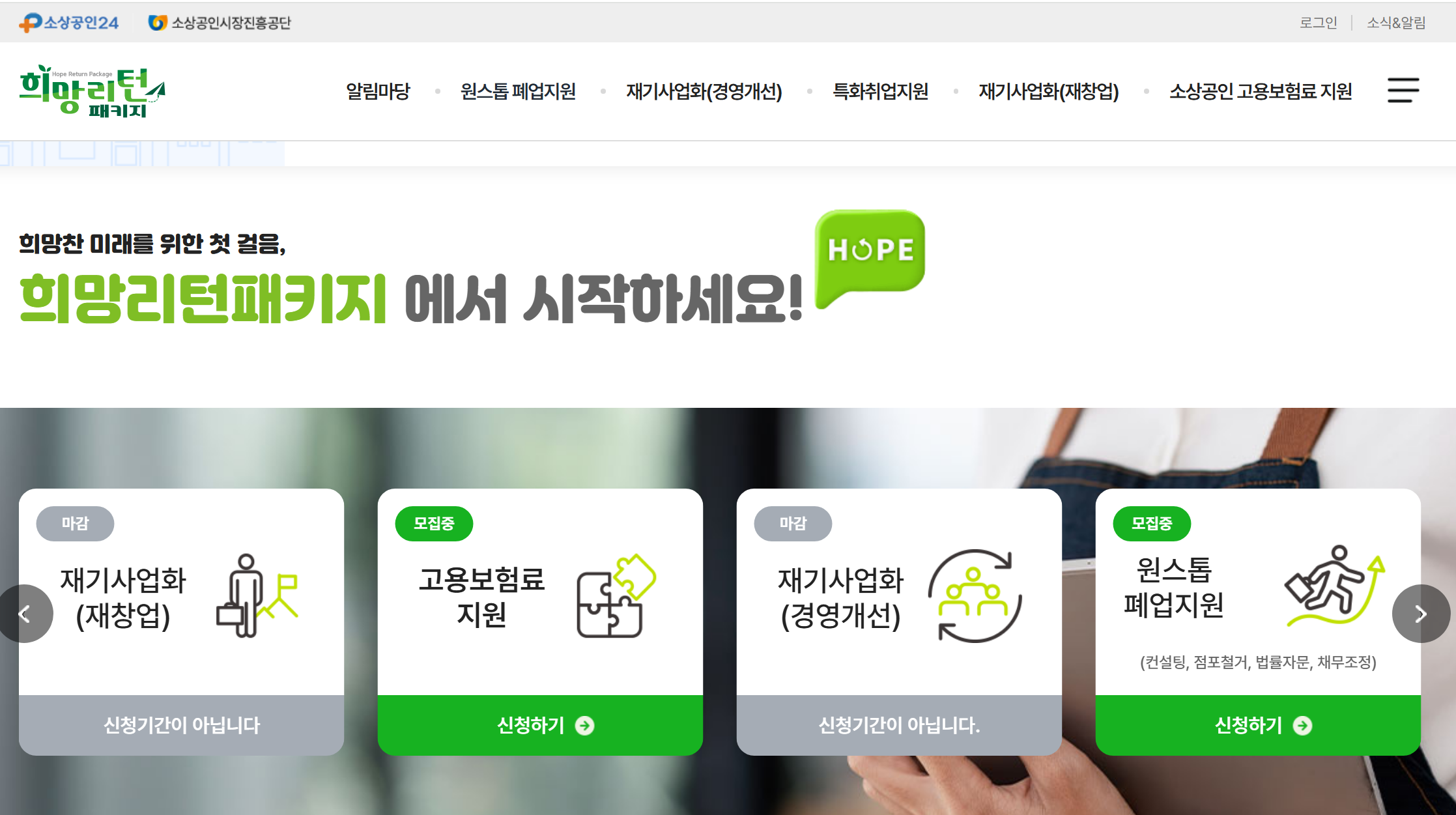 - 희망리턴패키지 홈페이지 접속